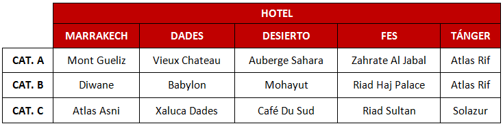 • El alojamiento en los hoteles está sujeto a disponibilidad en el momento de efectuar la reserva. Si el hotel indicado está completo, se ofrecerá un alojamiento alternativo. Todas las clasificaciones de los hoteles están determinadas de acuerdo con las autoridades locales.
