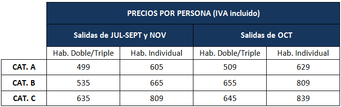 • El precio ofrecido es en base a contratación del circuito en base a contratación en categoría A, en habitación doble compartida, en cualquiera de las salidas de julio a septiembre y de noviembre de 2017.