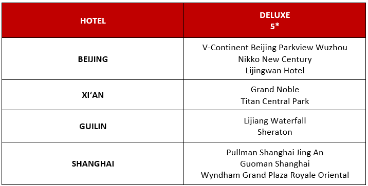 - Visitas con guías locales de habla hispana en Beijing, Xian, Shanghai y Guilin, el resto en inglés