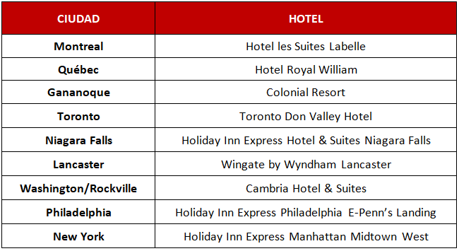 - Guías locales en las visitas de Montreal, Quebec y Washington