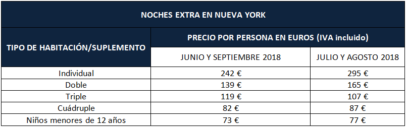 PRECIOS DE NOCHES EXTRA EN NUEVA YORK POR PERSONA
