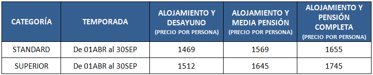 - Todas las tarifas son por persona.